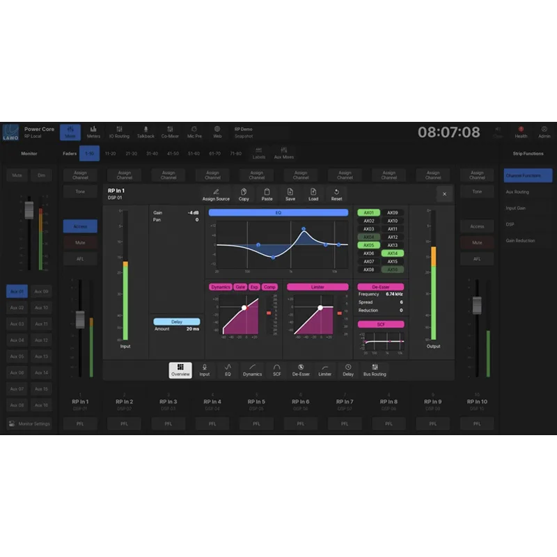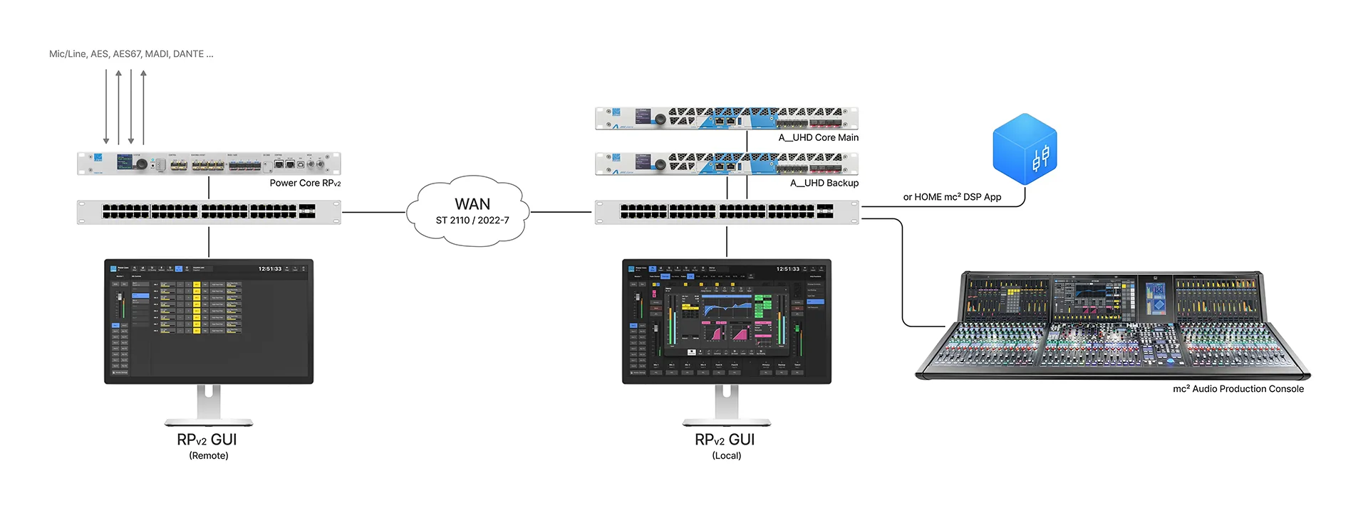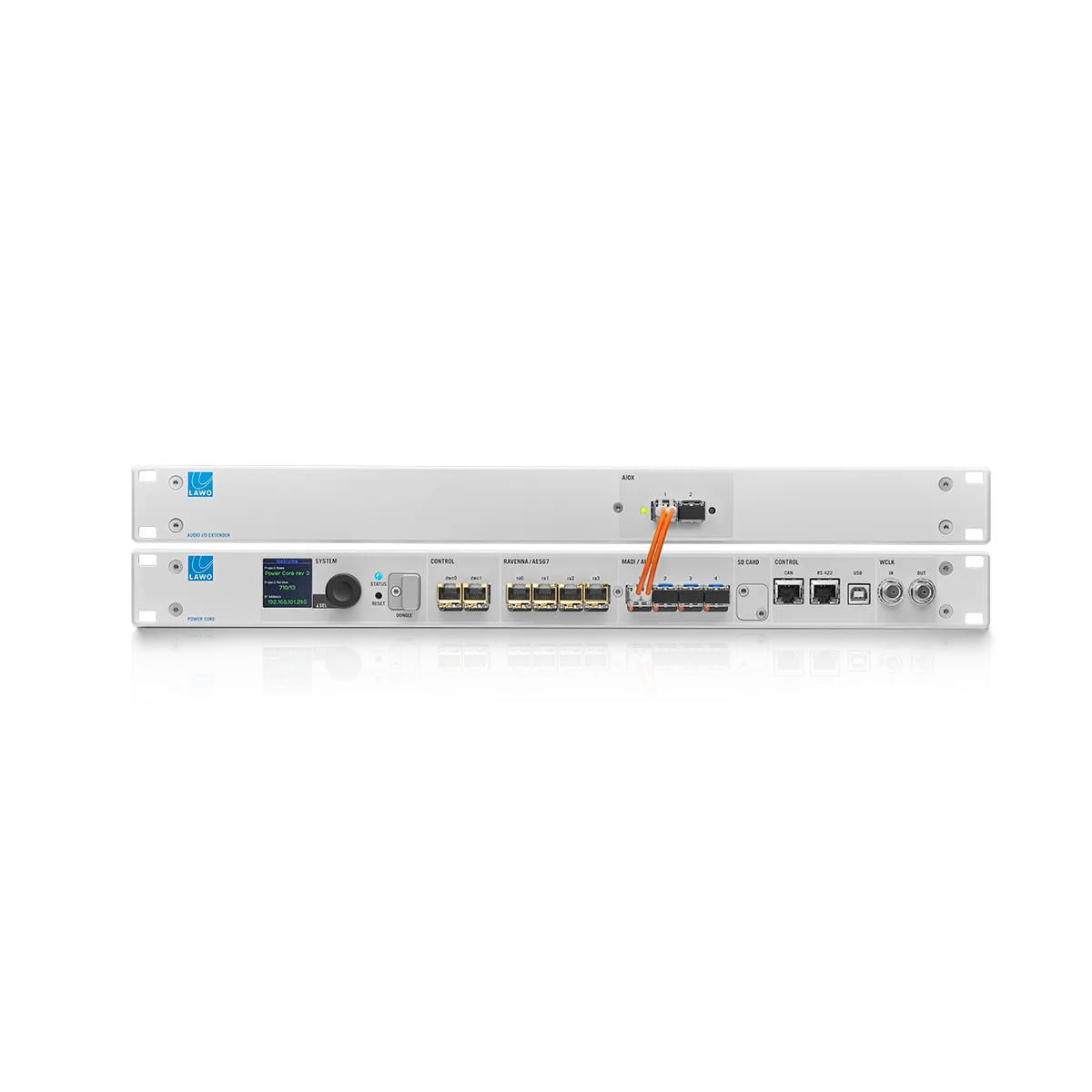 Up to 20 AIOX units can be connected to one Power Core engine, for a massive 1,280 analog or digital audio inputs and outputs, plus GPIO within just half the space of a typical rack.