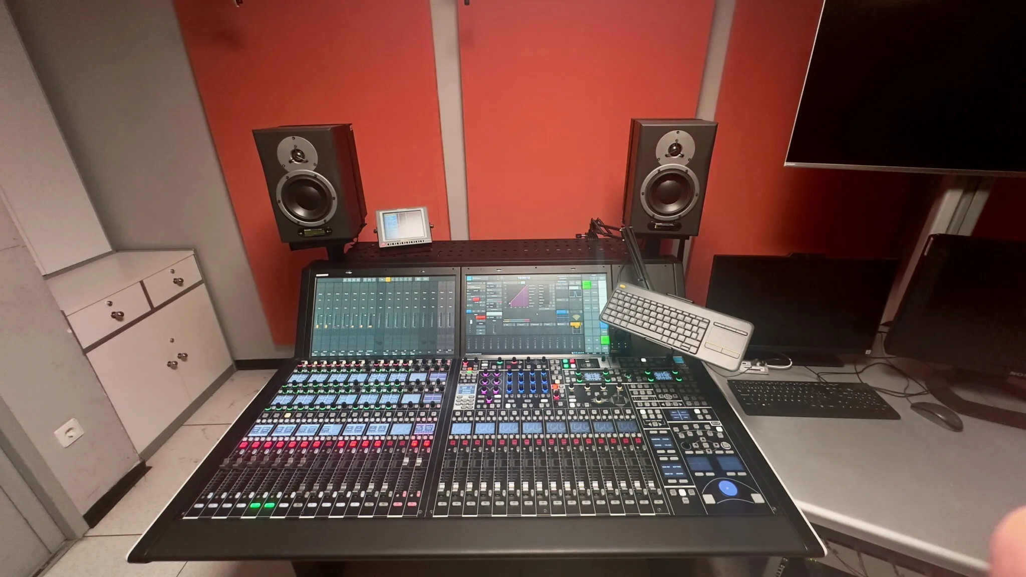 Key components of the upgrade include two 32-fader mc²56 MkIII consoles and one 16-fader mc²56 MkIII, powered by six A__UHD Core audio processing engines in redundant design, each boasting 1024 DSP channel processing. Seamlessly integrated with Waves SoundGrid server, these consoles provide operators access to Waves’ extensive plug-in library for real-time signal processing, allowing them to conveniently control reverbs, multi-tap delays, graphic equalizers and multiband compressors directly via the console’s keyboard and touchscreen. All plug-in settings can be easily stored and recalled with the console’s snapshots.